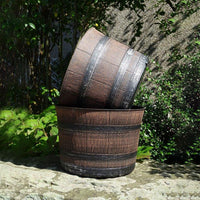 This strong heavy duty planter has all the great look and feel of a traditional wooden whiskey barrel planter, but is actually a lightweight alternative that will never rot or need varnishing.