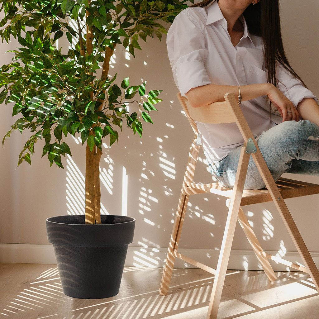 The Tierra Verde Baritone Round Planter makes a bold statement while maintaining refined utility. Designed with recycled rubber, this planter is robust, frostproof and built to last outdoors year-round. Whether as a solo focal point or grouped with other pots, its slate finish and classic round silhouette offer timeless appeal.